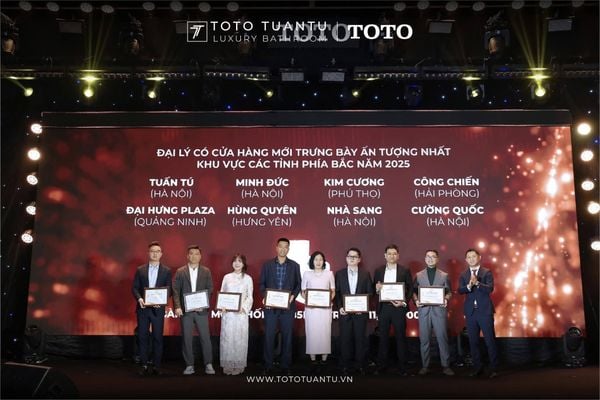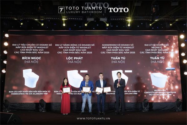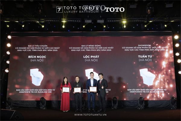 Không chỉ là một buổi tổng kết cuối năm, chương trình còn thực sự bùng nổ năng lượng tích cực, khi những thành quả nổi bật của năm 2025 được vinh danh một cách xứng đáng. Trong khuôn khổ sự kiện, TOTO Tuấn Tú vinh dự là đơn vị nhận đồng thời 7 giải thưởng quan trọng, ghi dấu ấn mạnh mẽ trong hệ thống phân phối TOTO khu vực miền Bắc.